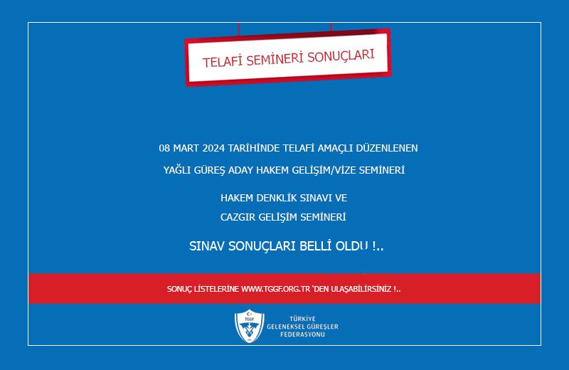 08 Mart 2024 Tarihinde telafi amaçlı düzenlenen yağlı güreş aday hakem Gelişim / Vize Semineri hakem denklik sınavı ve cazgır gelişim semineri sınav sonuçları belli oldu.