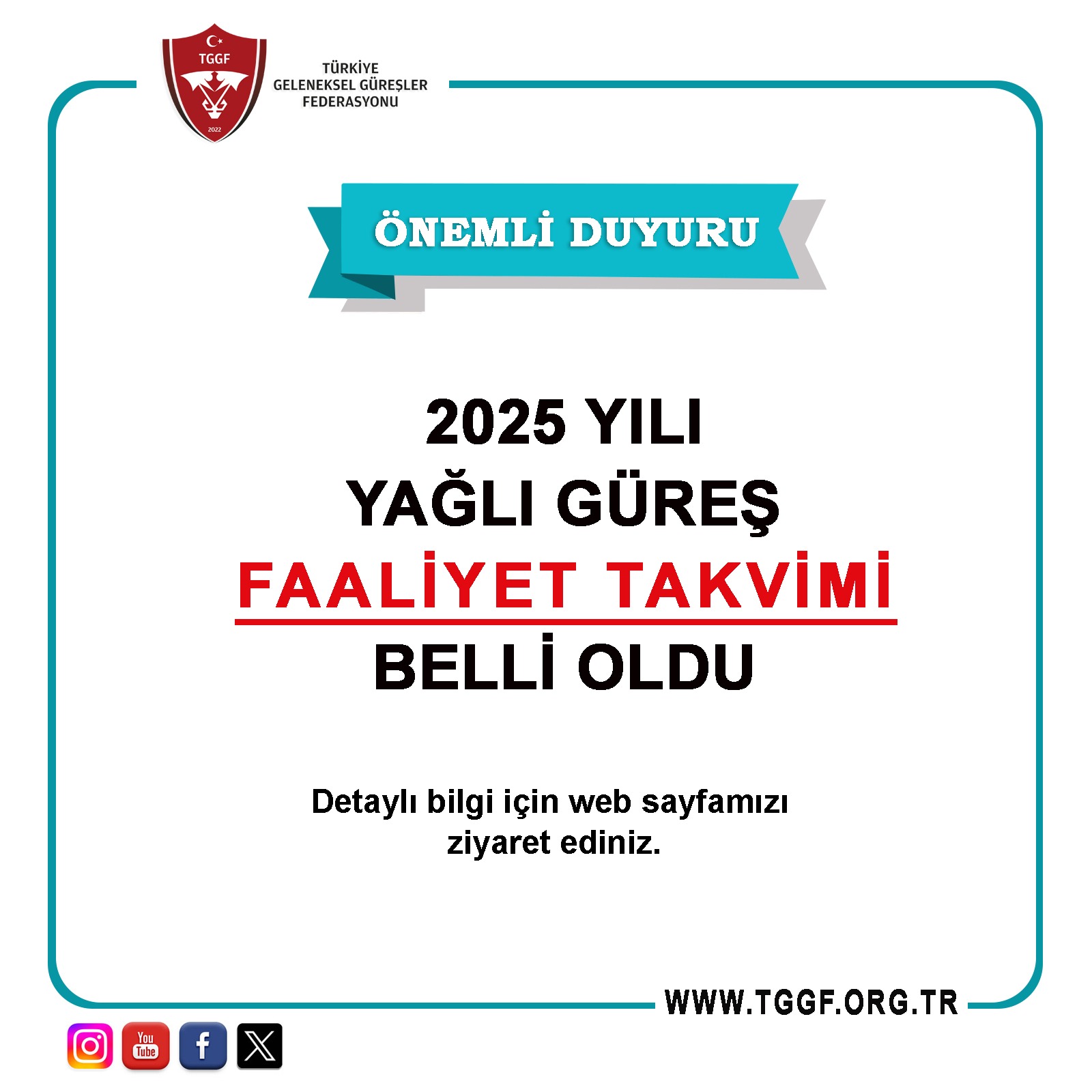 2025 YILI YAĞLI GÜREŞ FAALİYET TAKVİMİ İÇİN TIKLAYINIZ!..