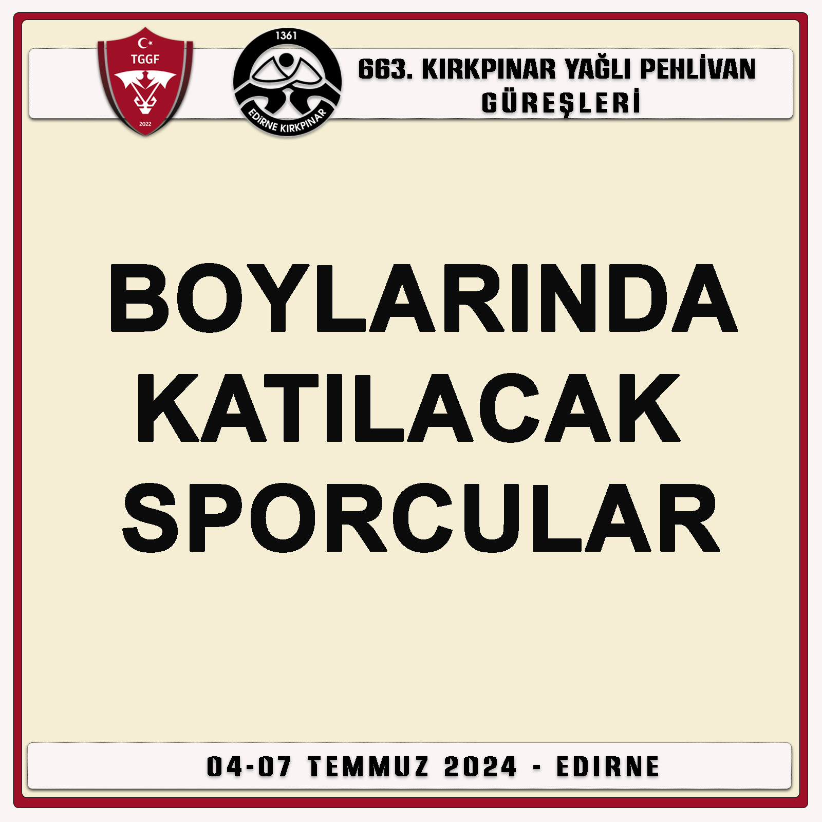 663.KIRKPINAR YAĞLI PEHLİVAN GÜREŞLERİNE KATILACAK SPORCULAR