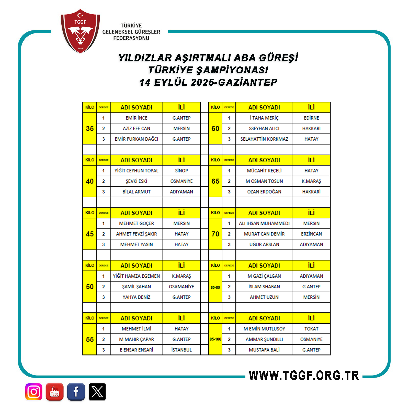 AŞIRTMALI ABA GÜREŞİ TÜRKİYE ŞAMPİYONASI SONUÇLARI İÇİN TIKLAYINIZ !..