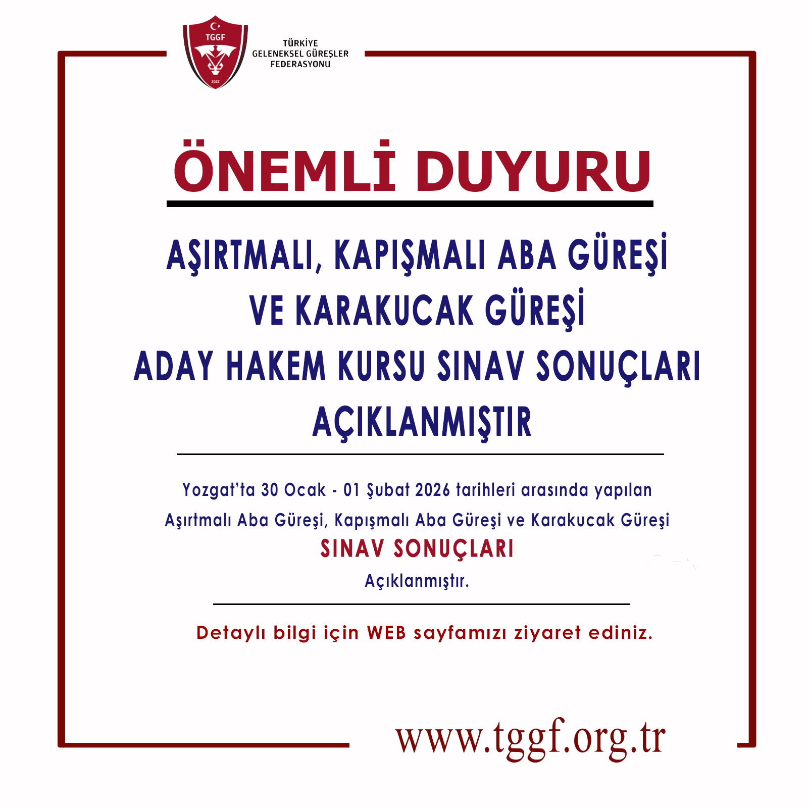 AŞIRTMALI VE KAPIŞMALI ABA GÜREŞİ SINAV SONUÇLARI İÇİN TIKLAYINIZ !..