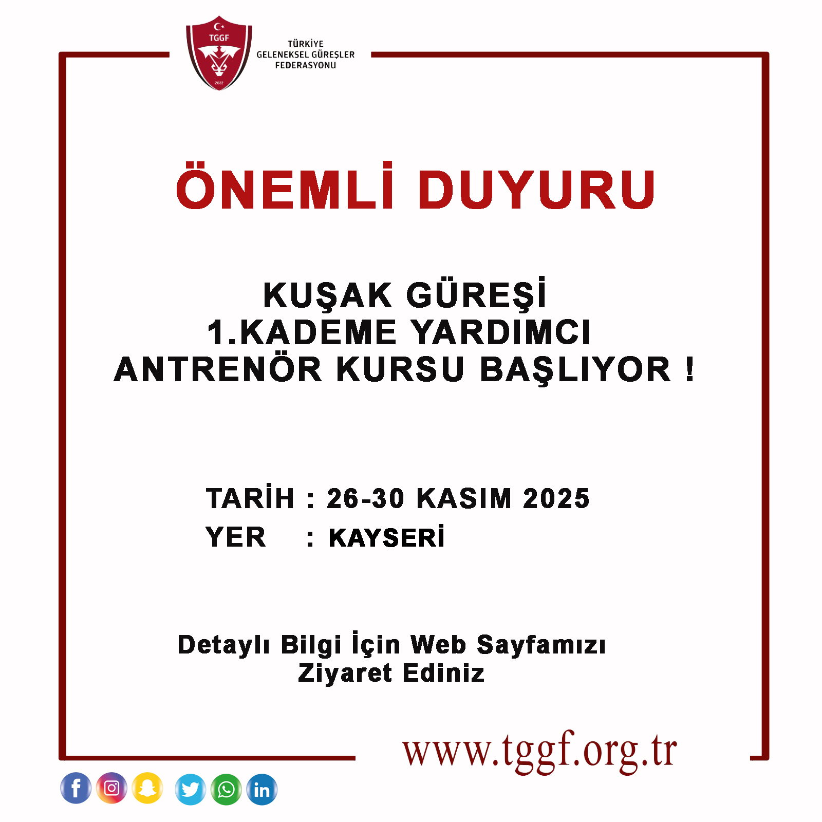 - Kurs kontenjanlarının dolması halinde ileri tarihlerde de kademeler için uygulama eğitimi kursları açılmaya devam edilecektir. Duyurular federasyonumuzun resmi internet adresinden yapılacaktır.