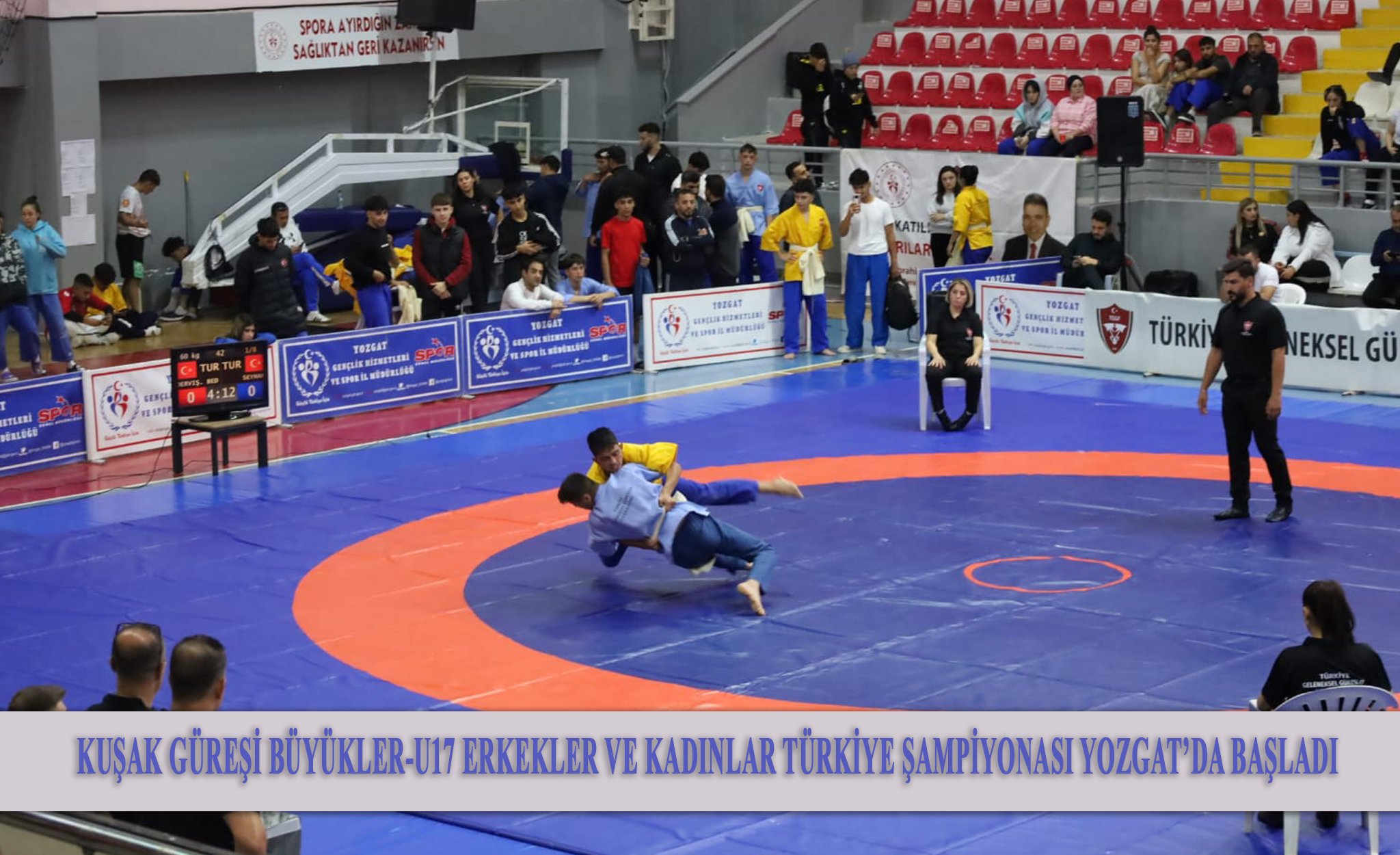 Kuşak Güreşi Büyükler – U17 Erkekler ve Kadınlar Türkiye Şampiyonası Yozgat’da başladı.3 gün sürecek şampiyonada bugün U17 Erkekler ve Kadınlar müsabakaları yapıldı.U17 Erkeklerde 26 ilden 121 sporcu katılırken, kadınlarda 21 ilden 45 sporcu katıldı.Güreşlerin ardından Erkeklerde ve Kadınlarda derece yapan sporculara madalyaları takdim edildi.
