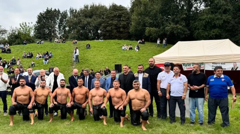 Tarihi Kırkpınar’ın Efsane Ağası Sayın Seyfettin Selim ve 664. Tarihi Kırkpınar Ağası Sayın Ufuk Özünlü sponsorluğunda gerçekleşen Almanya Marl Yağlı Güreşlerine Federasyon Başkanımız Sayın İbrahim Türkiş, Antalya Büyükşehir Belediye Başkanı Sayın Muhittin Böcek, Büyükçekmece Belediye Başkanı Sayın Hasan Akgün, Elmalı Belediye Başkan Yardımcısı Sayın Hasan Aydın, Ebedi Altın Kemer Sahibi Tarihi Kırkpınar Ağası Sayın Seyfettin Selim, 664. Tarihi Kırkpınar Yağlı Güreşleri Güreş Ağası Sayın Ufuk Özünlü, 673. Tarihi Elmalı Yeşilyayla Yağlı Güreşleri Güreş Ağası Hakan Çetin ve çok sayıda Türk yetkili katıldı.