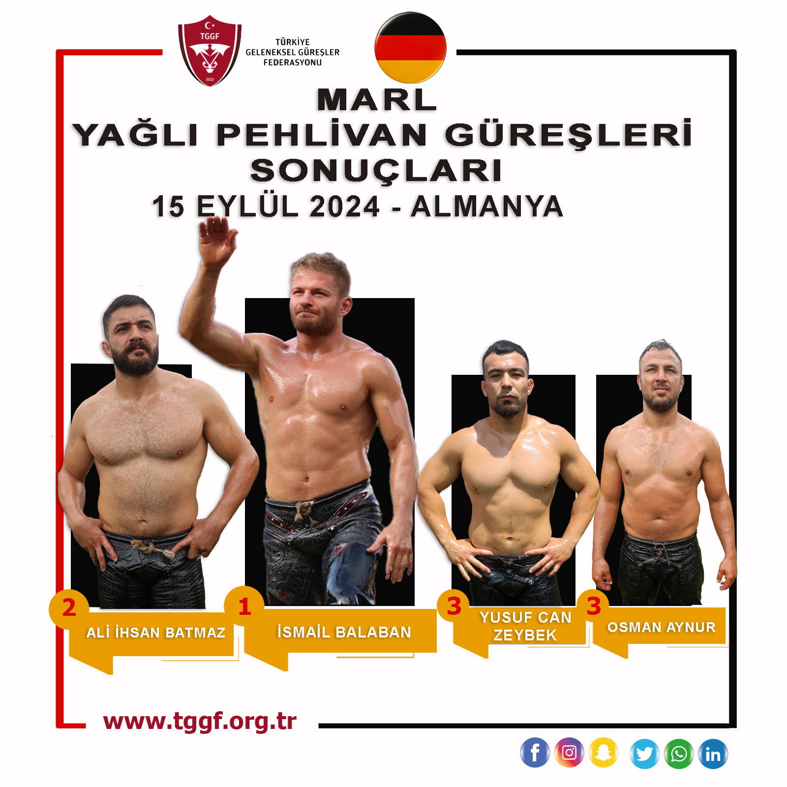 Celal Romanoğlu organizatörlüğünde Bildungszentrum in Marl derneğinin düzenlediği Marl Yağlı Pehlivan Güreşleri 15 Eylül 2024 tarihinde Almanya’nın Marl kentinde düzenlendi.