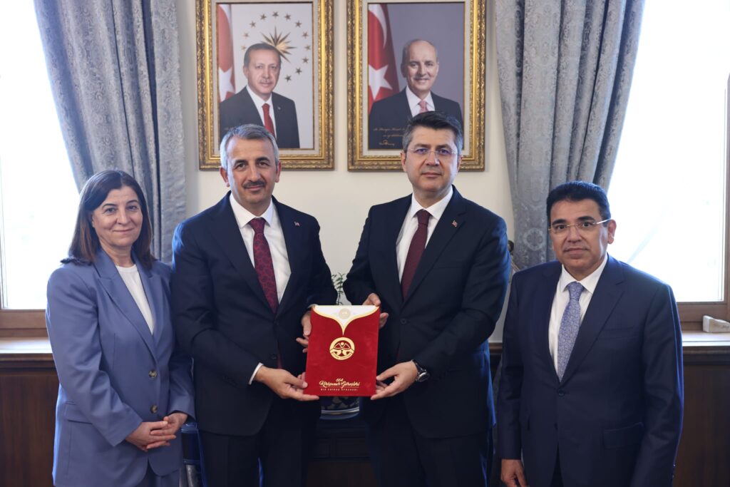Cumhurbaşkanımız Sn Recep Tayyip Erdoğan’a Kırmızı Dipli Mum takdim etti ve 664.Tarihi Kırkpınar Yağlı Güreşleri’ne davet etti.664.Tarihi Kırkpınar Yağlı Güreşleri öncesi çeşitli ziyaretlerde bulunan heyet, TBMM Başkanı Sn Numan Kurtulmuş’a, Cumhurbaşkanı Yardımcısı Sn Cevdet Yılmaz’a, Adalet Bakanı Sn Yılmaz Tunç’a, İçişleri Bakanı Sn Ali Yerlikaya’ya, İçişleri Bakan Yardımcıları Sn Bülent Turan ve Münir Karaoğlu’na, Kültür ve Turizm Bakanı Sn Mehmet Nuri Ersoy’a, Kültür ve Turizm Bakan Yardımcısı Sn Nadir Alparslan’a, Gençlik ve Spor Bakanı Sn Osman Aşkın Bak’a, Tarım ve Orman Bakanı Sn İbrahim Yumaklı’ya ve Diyanet İşleri Başkanı Prof.Dr. Sn Ali Erbaş’a, 2013-2015 ve 2015-2016 dönemleri İçişleri Bakanı Sn Efkan Ala’ya, 2016-2023 dönemleri İçişleri Bakanı Süleyman Soylu’ya ve TBMM Genel Sekreteri Sn Hüseyin Kürşat Kırbıyık’a, Kırmızı Dipli Mum takdim ederek, 664.Tarihi Kırkpınar Yağlı Güreşleri’ne davet ettiler.