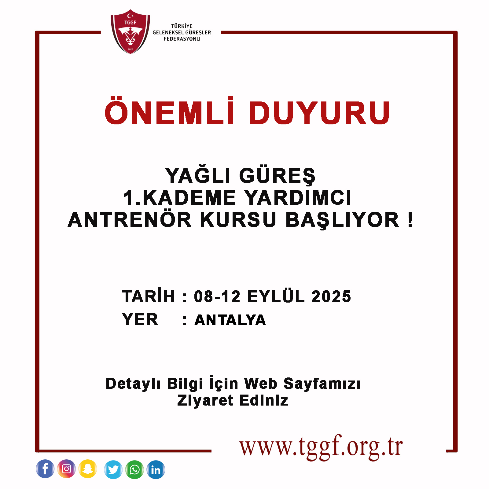 - Kurs kontenjanlarının dolması halinde ileri tarihlerde de kademeler için uygulama eğitimi kursları açılmaya devam edilecektir. Duyurular federasyonumuzun resmi internet adresinden yapılacaktır.