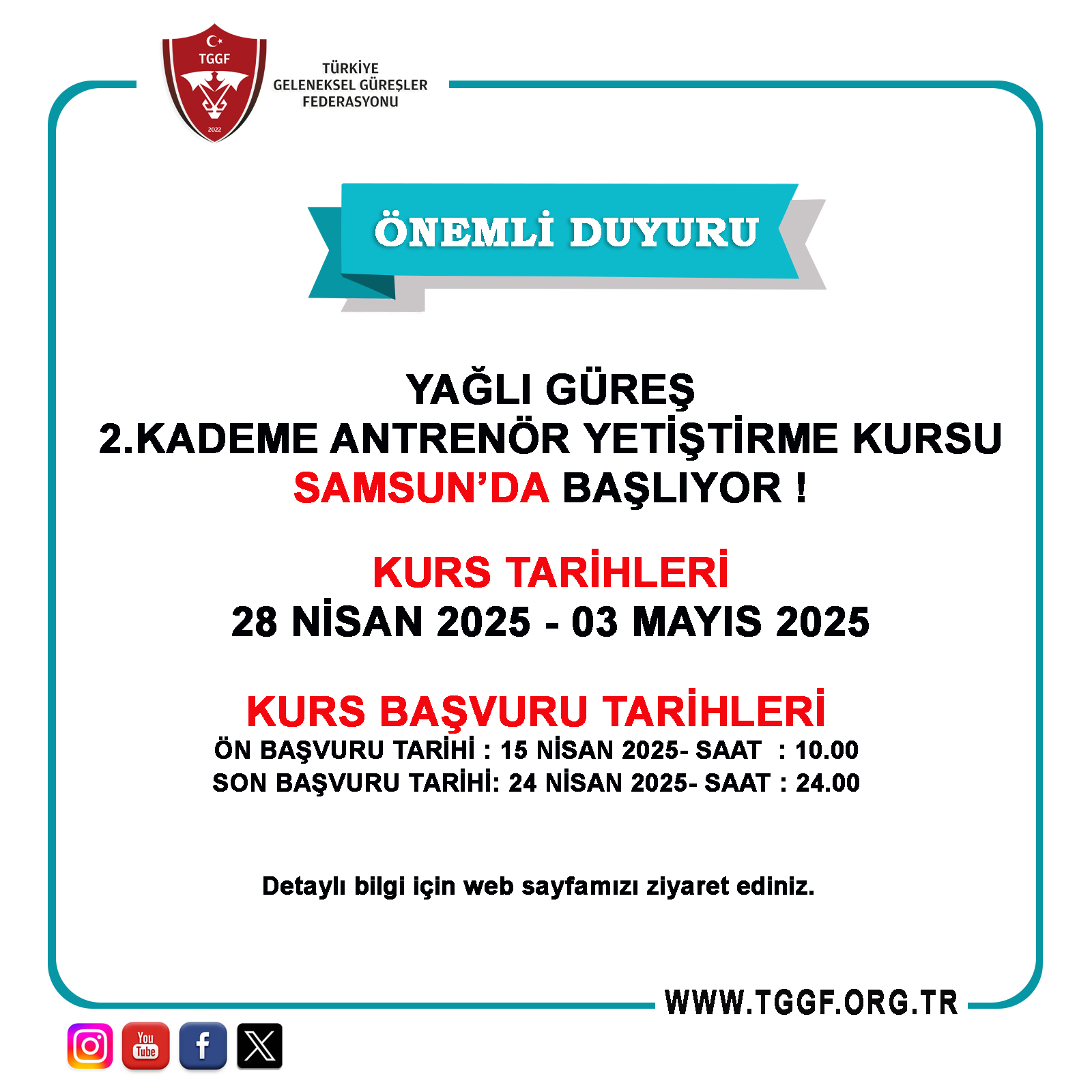 KURS TARİHLERİ : 28 NİSAN 2025 – 03 MAYIS 2025