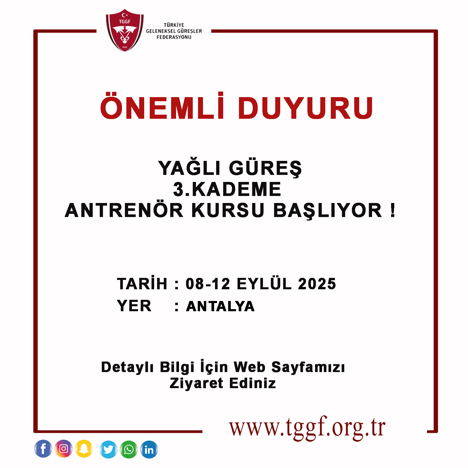 Kurs kontenjanlarının dolması halinde ileri tarihlerde de kademeler için uygulama eğitimi kursları açılmaya devam edilecektir. Duyurular federasyonumuzun resmi internet adresinden yapılacaktır.
