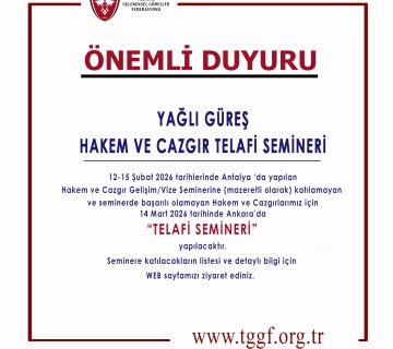 Ayrıca Sabri Geçer ve Yaşar Kale Yağlı Güreş Gözlemciler Kurulu üyeliği görevine atanmışlardır. Kendilerine görevlerinde başarılar dileriz.
